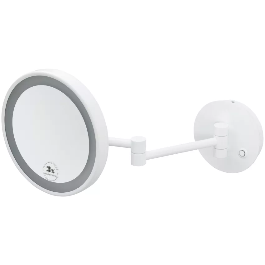 This wall-mounted Nelas LED vanity mirror with a diameter of 20 cm puts you in the perfect light thanks to its pleasant lighting and 3x magnification. The mirror is equipped with a freely rotatable brass mirror arm, which can be easily extended or folded back flat against the wall.