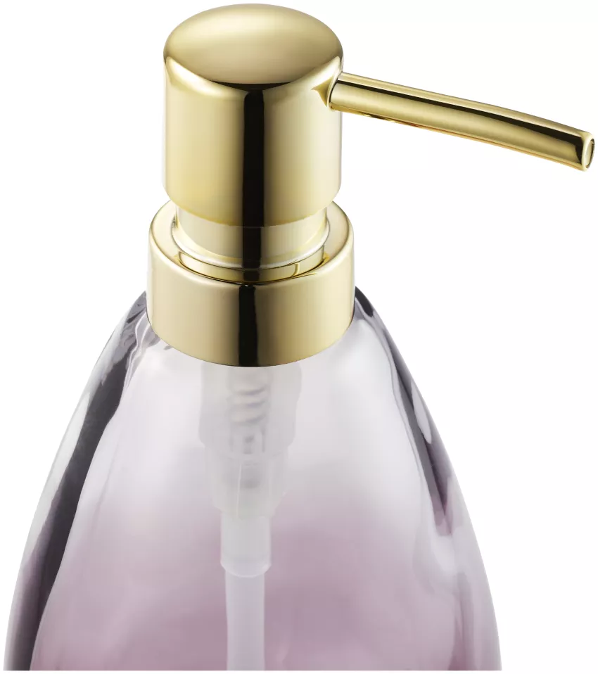 - Couleurs : Violet, gris, orange et aqua, complétés par des accents dorés sur les couvercles et les pompes.