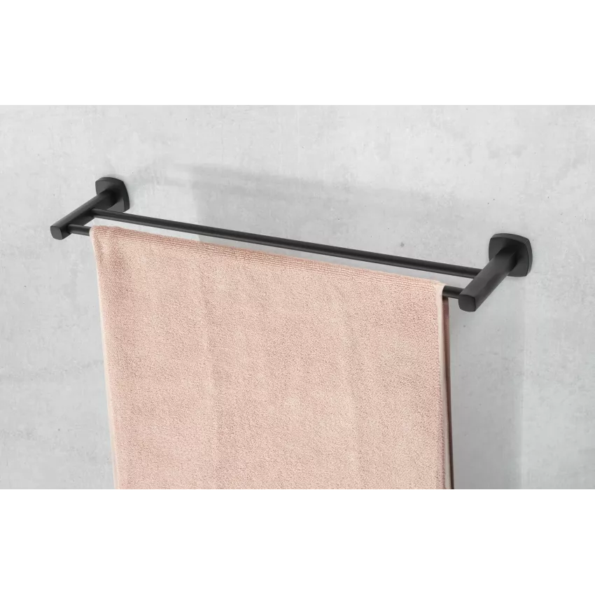 Die Doppelbadetuchstange Quinto in schwarz matt ist die perfekte Wahl für alle, die ein modernes und elegantes Badezimmer gestalten möchten. Mit ihrem mattschwarzen Finish bringt sie eine edle, zeitgemässe Ästhetik in dein Bad und setzt ansprechende Akzente. Die minimalistische Form und die schwarze Oberfläche verleihen deinem Raum ein edles und modernes Flair.